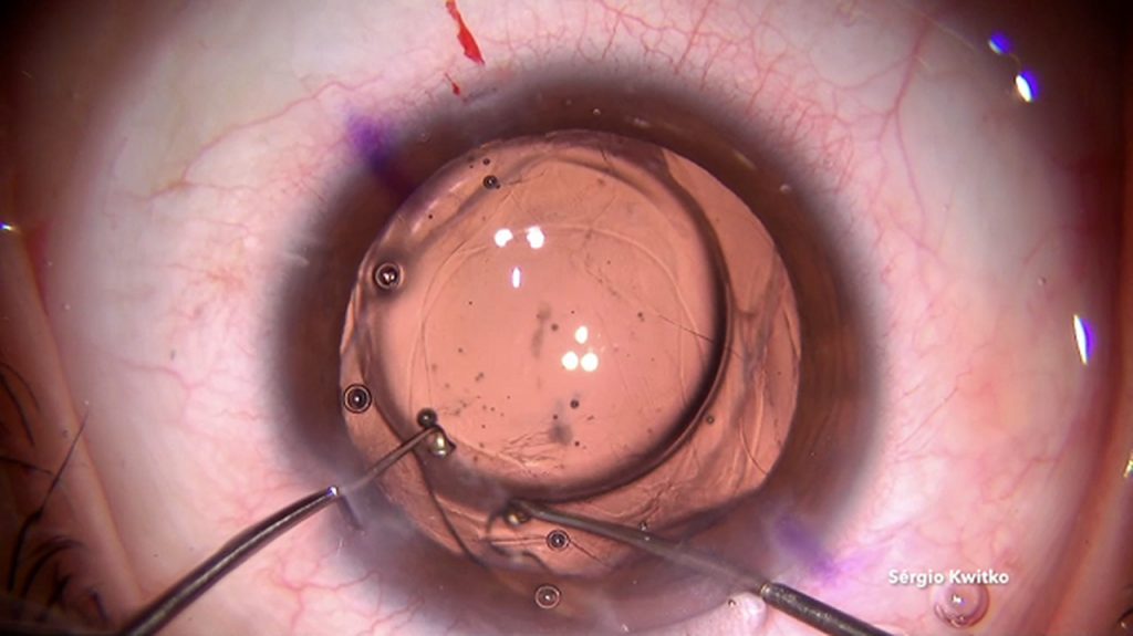 Subluxação do cristalino com retratores de íris, anel expansor capsular, e fixação iriana de LIO – Dr. Sérgio Kwitko